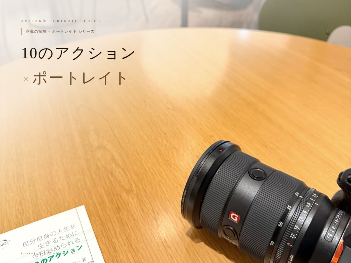撮影の前に、アバター®の「10のアクション」からあなたに合ったワークをご一緒します。呼吸を整える。微笑みを意図する。感謝に気づく。ただそれだけのことが、内側をそっとほぐし、いつもとは違う表情を自然に引き出してくれます。